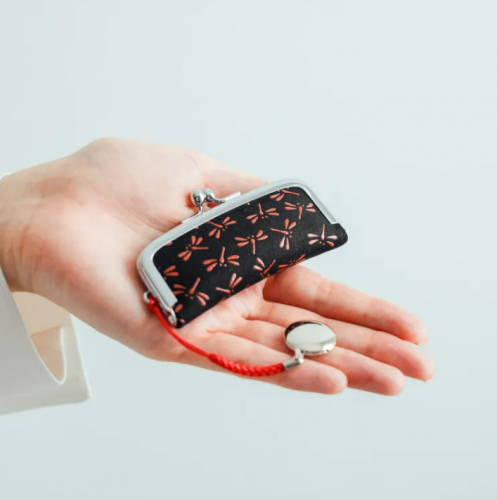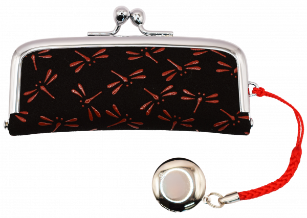 甲州印傳印鑑入325(印鑑ケース)【黒地×赤漆×とんぼ】